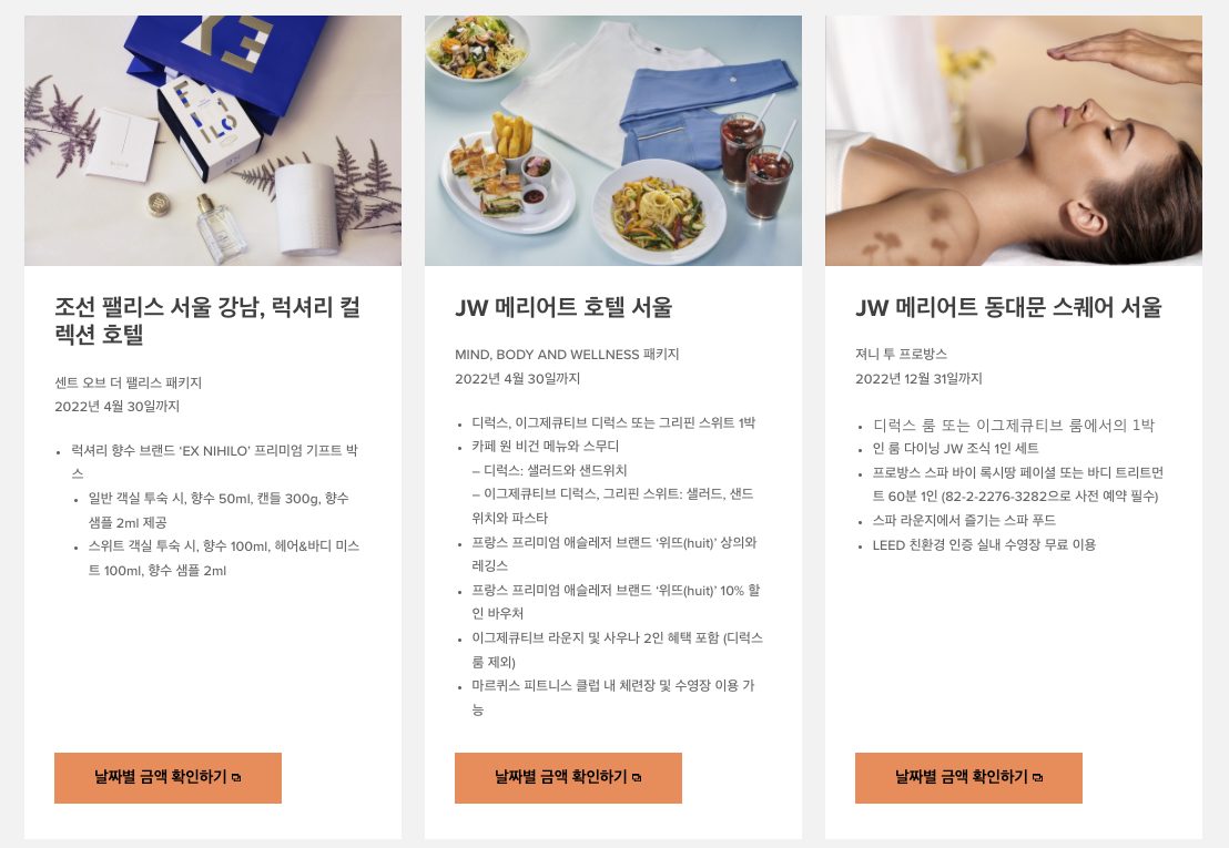 대구 메리어트 호텔 / 쉐라톤 그랜드 인천 호텔 / 웨스틴 조선 서울 / JW 메리어트 호텔 서울 / JW 메리어트 동대문 스퀘어 서울