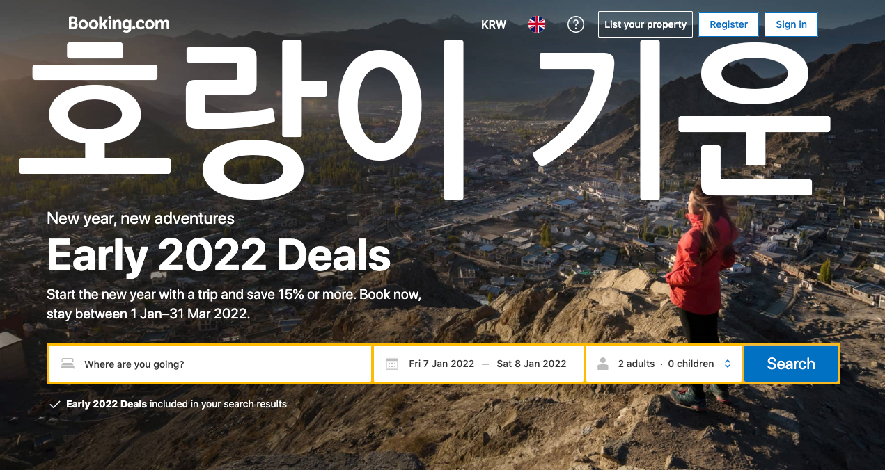 Booking.com Deals 15~30% off 2022 겨울방학 시대