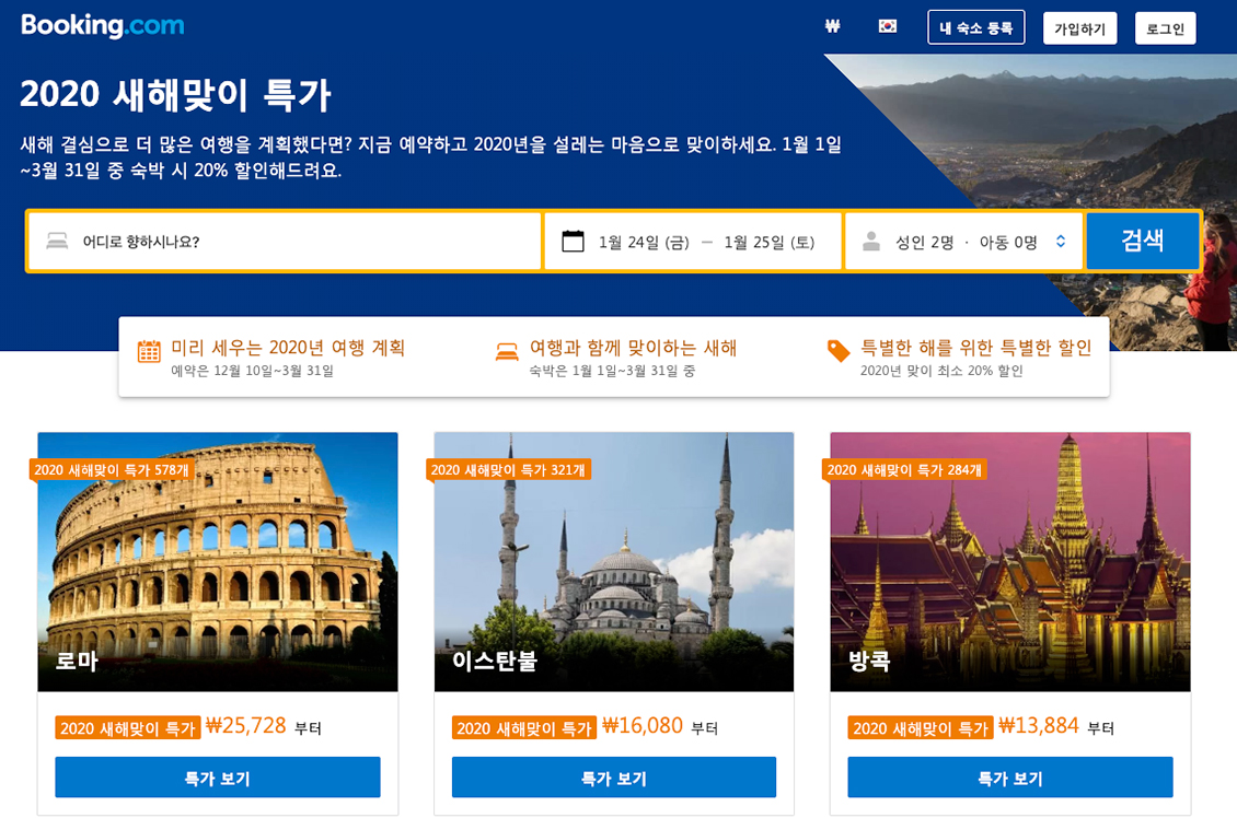 부킹닷컴 BOOKING.COM 2020 동남아, 유럽에서 즐겨보는것이 어떨까?