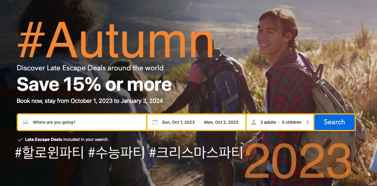 Booking.com Deals 15~30% off 2023 Autumn x Winter Vacation 가을축제 준비 부킹닷컴 10월 프로모션코드 정보