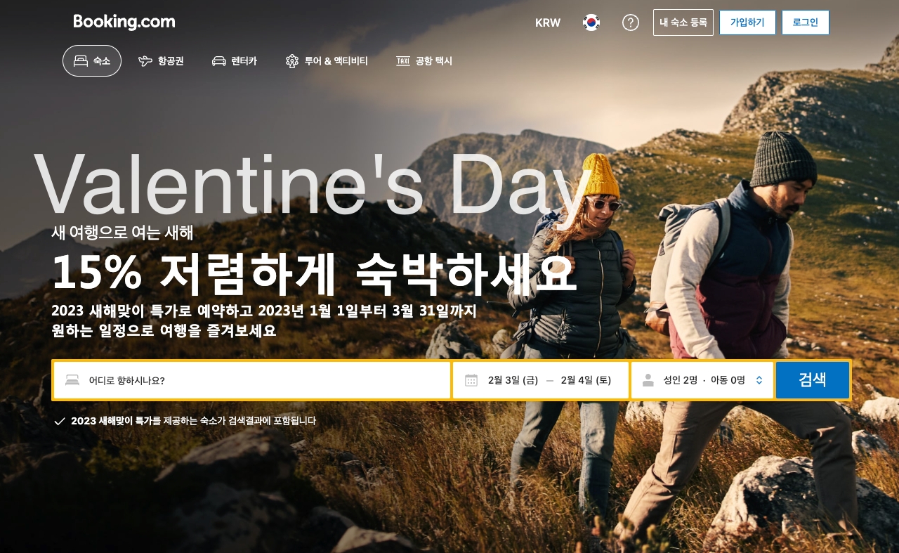 Booking.com Deals 15~30% off 2023 Winter Vacation & Valentine Day 겨울휴가 준비 부킹닷컴 2월 프로모션코드 정보