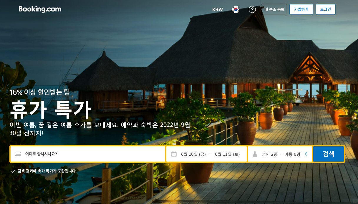 부킹닷컴 6월 프로모션코드 15% 할인 여름 휴가특가 호텔예약 Booking.com Deals 2022 Summer Vaction