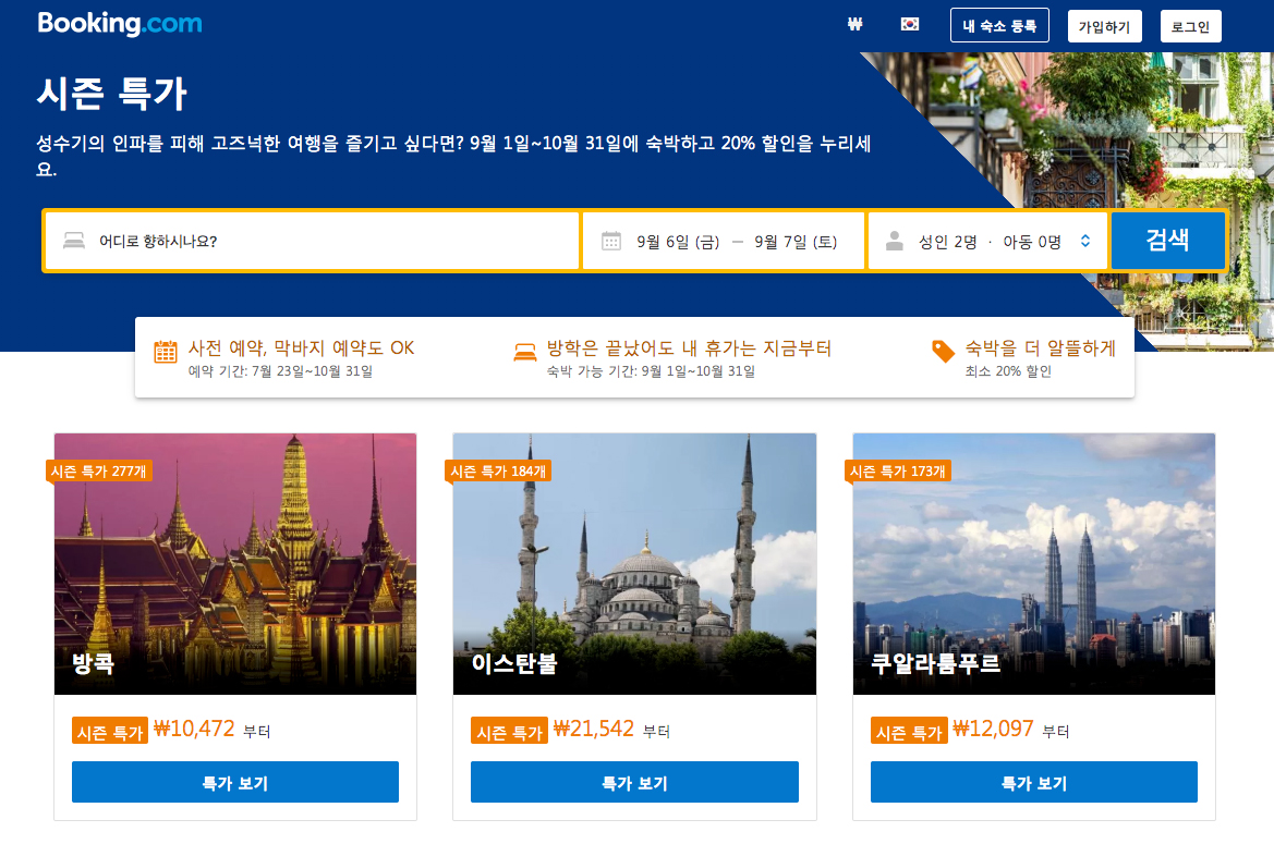 부킹닷컴 9월 할인코드 10월 가을시즌 유럽배낭여행 국내 및 동남아 배낭여행 프로모션
