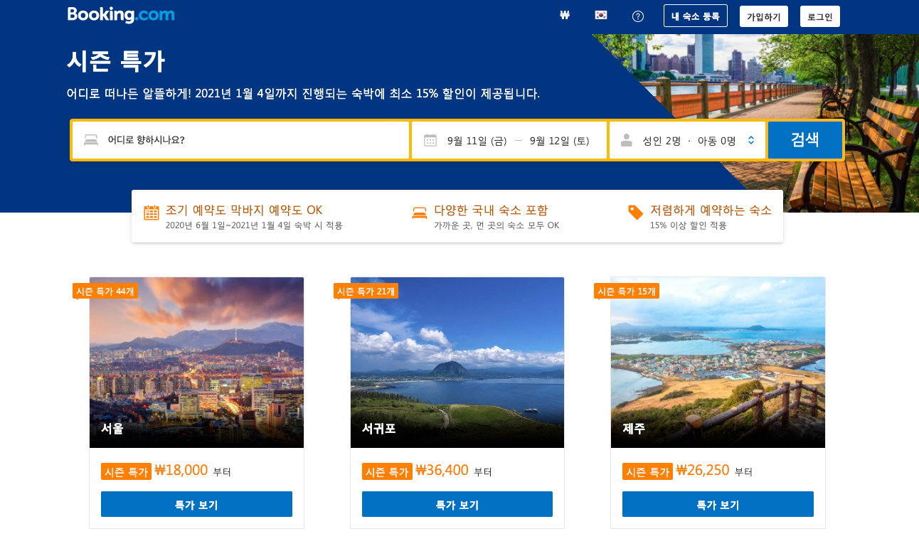 1. 9월 - 10월 인기 추석연휴시즌 미리 시크릿특가로 이번주 국내 서울 부산 강릉 제주도 일상탈출 특가 15% 할인 숙박시설상품확인