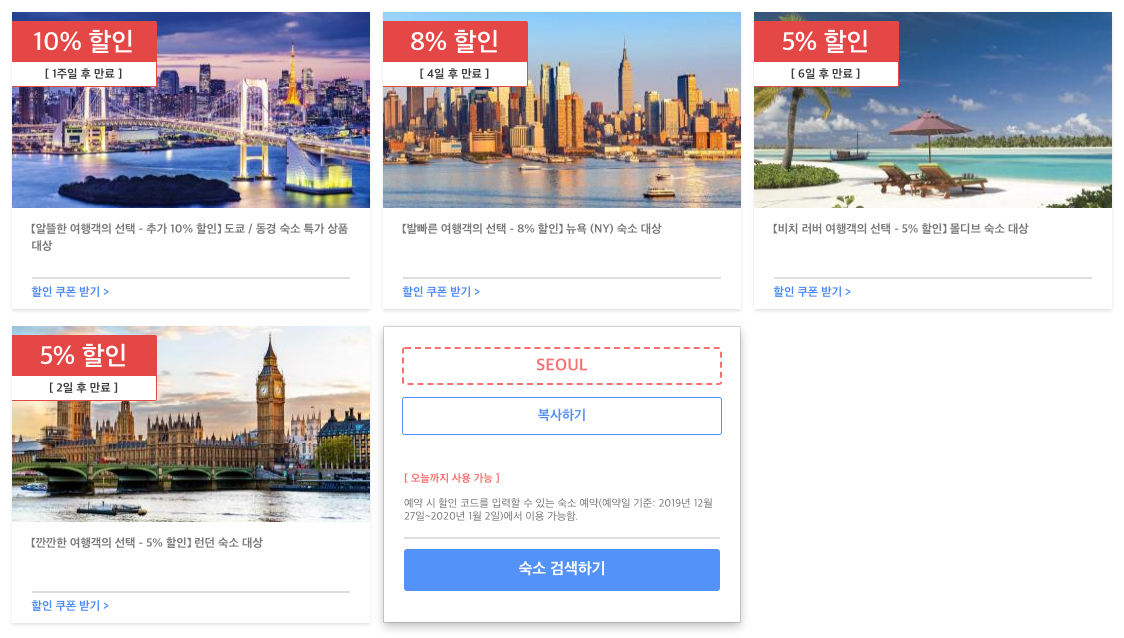 | 호텔스닷컴 1월 할인코드 8% OFF Hotels.com 2020 설날 해외호텔 다잘사 (0) | 2020.01.06 |