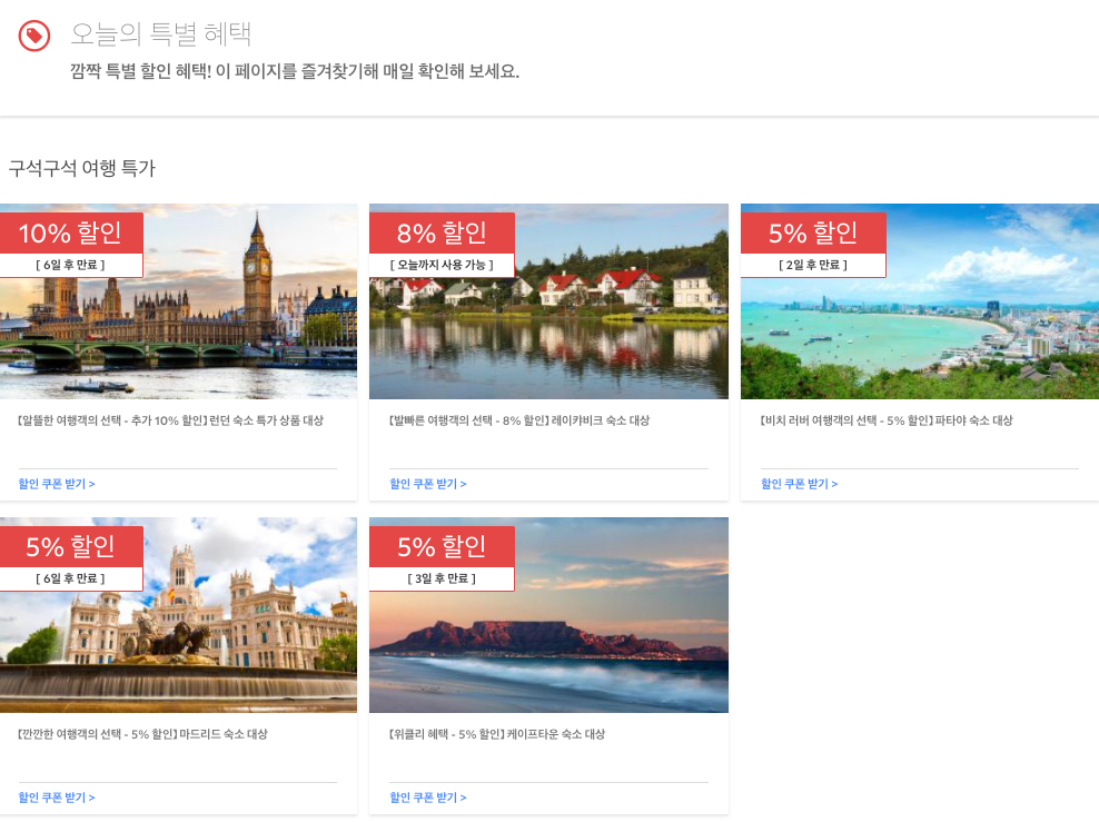 매주 새로운 지역 또는 국가별로 신규할인코드가 발행되고 있다.