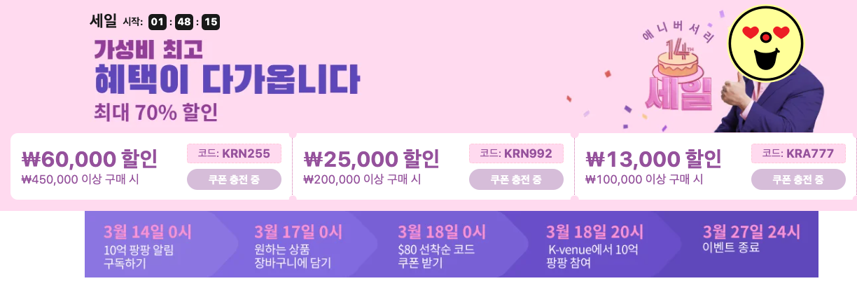 14주년 알리익스프레스 프로모션코드 애니버서리 쿠폰 정보