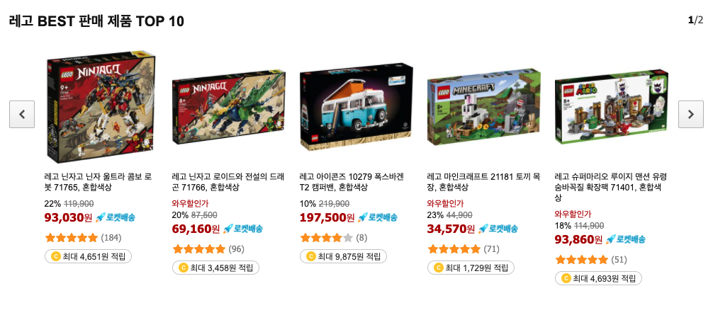 인기 레고 제품 Top10