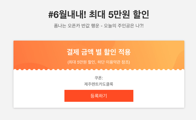 제주도 렌터카 오픈카 반값 5만원 쿠폰 렌트카 오늘이 제일 싸요
