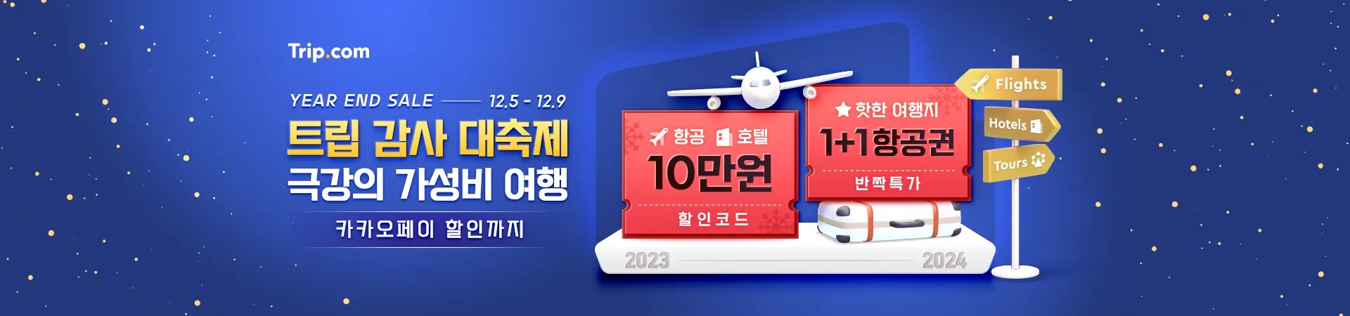 국내 및 해외 항공권 및 호텔예약, 트립닷컴 12월 - 1월 프로모션코드 준비