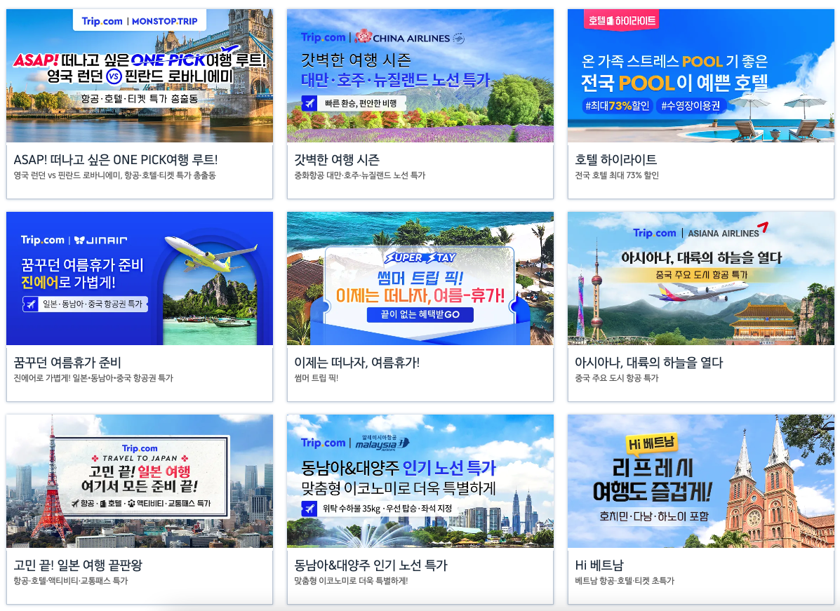 국내 및 해외 항공권 및 호텔예약, 트립닷컴 8월 - 9월 프로모션코드 준비