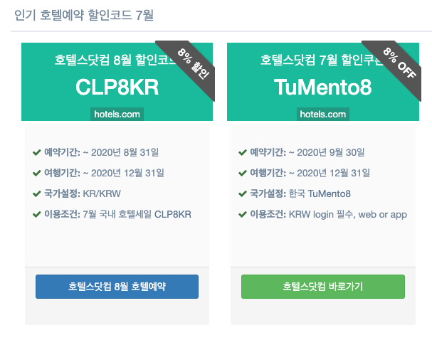 Hotels.com 호텔스닷컴 7월 할인코드 8월 여름 휴가 쿠폰정보 2020