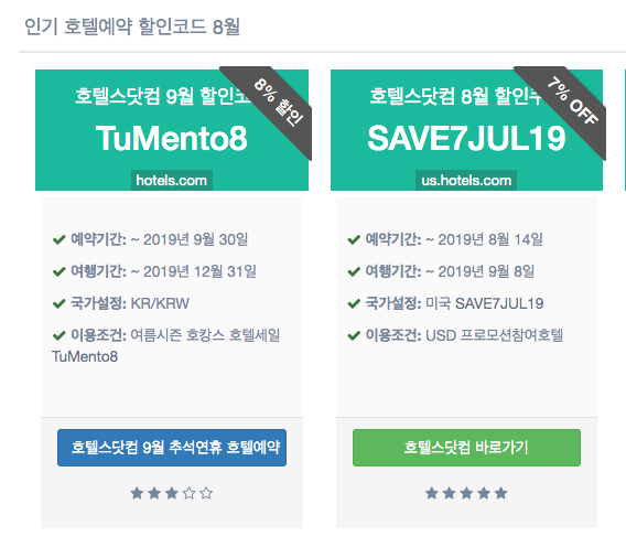 Hotels.com 호텔스닷컴 8월 할인코드 9월여행 쿠폰정보 2019