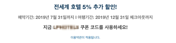 2. 한국 익스피디아 6월 할인코드 5% 할인 무조건 적용가능한 쿠폰 (KR, KRW, 7월 31일까지 적용가능. 체인호텔 제외 7% 호텔할인, 호텔만 할인도 가능)