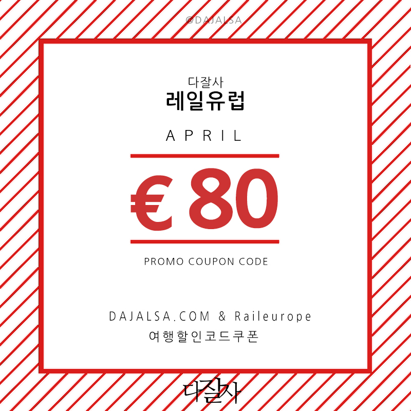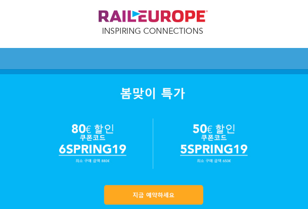 80유로 할인쿠폰 6SPRING19 (880유로~) 유레일 특가 최대 37% 할인