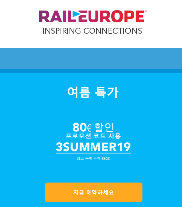 2019년 6월 7월 여름시즌 준비 유럽 기차예약 특가 프로모션정보