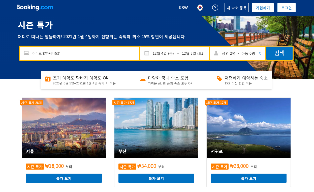 부킹닷컴 12월 할인코드 인기 크리스마스 여행지 독채숙소 Booking.com Deals 2020