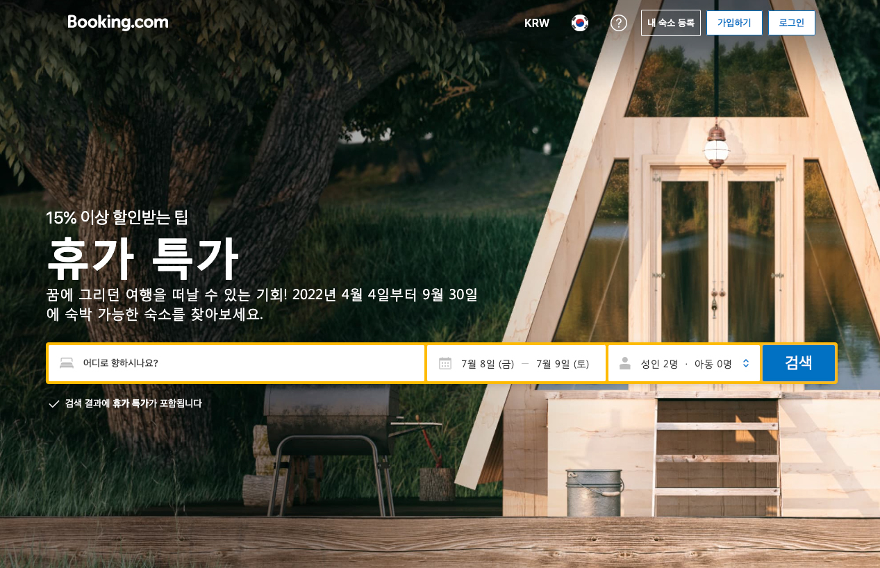 부킹닷컴 7월 프로모션코드 15% 할인 휴가특가 혼자만의 시간