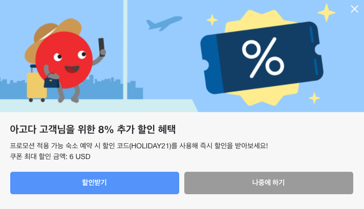 아고다 2월 할인코드 8% 할인 HOLIDAY21 쿠폰 서울, 제주도 호텔예약