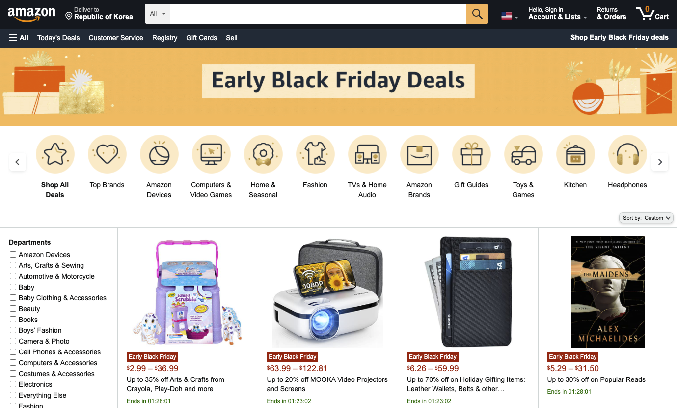 아마존 2021 November | Amazon.com Gift Finder Black Friday gift shop