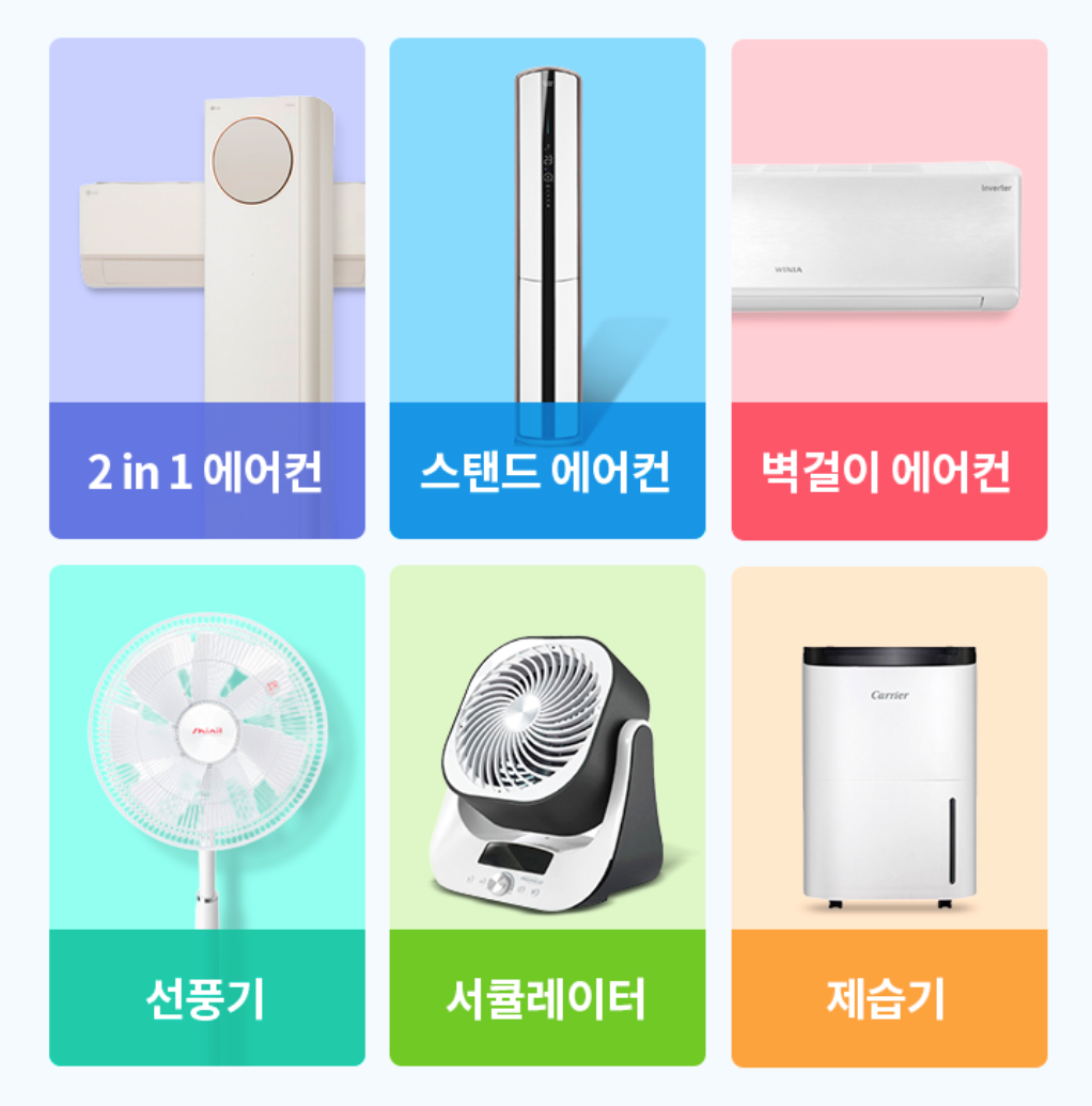 여름시즌 필수 가전제품 (에어컨, 선풍기, 제습기, 서큘레이터)