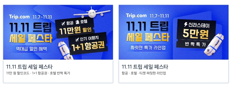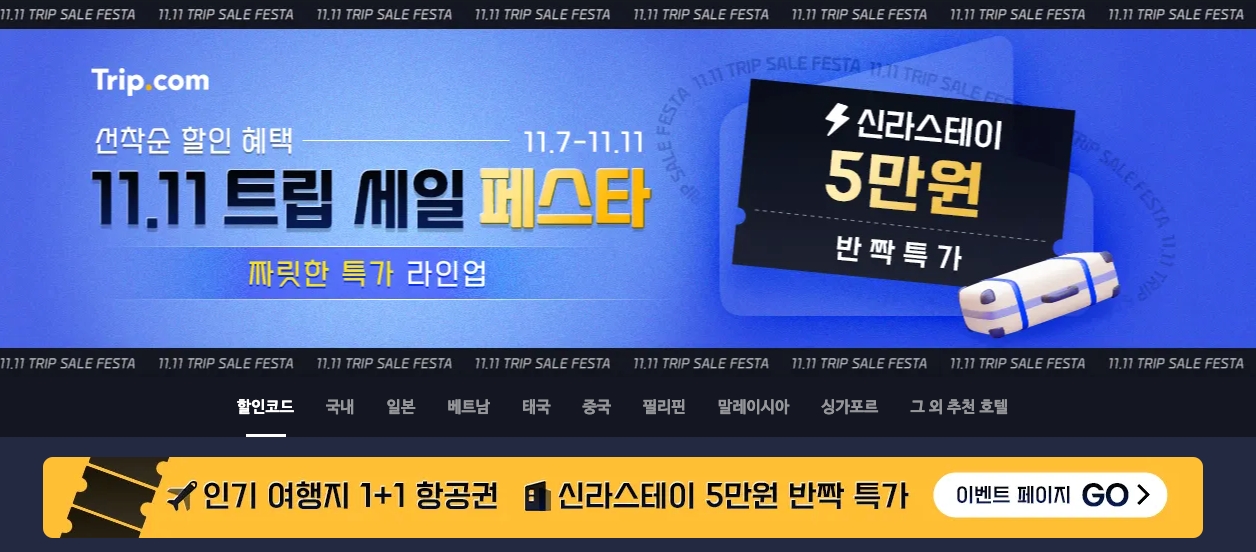 트립닷컴 11월 할인프로모션코드 11.11 트립세일페스타 호텔예약 Trip.com Promo 2023 November