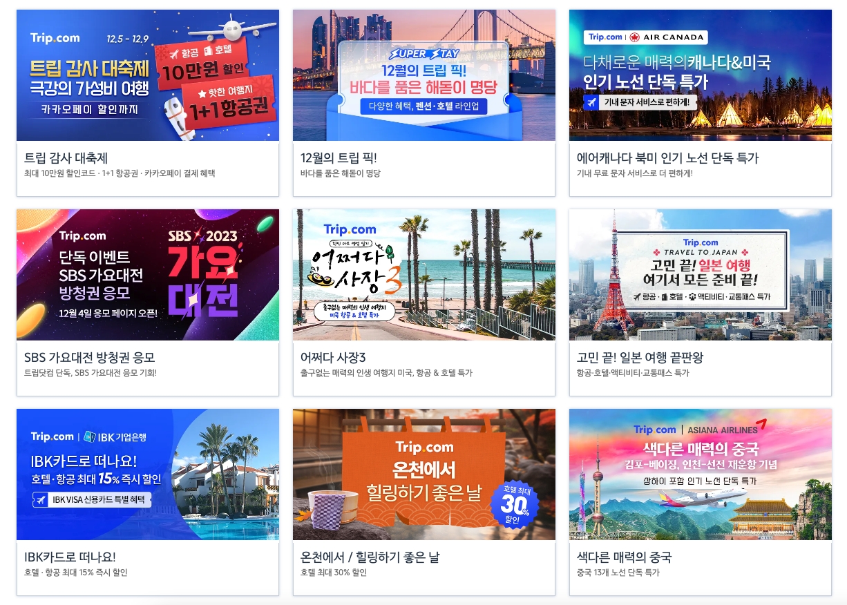 국내 및 해외 항공권 및 호텔예약, 트립닷컴 12월 - 1월 프로모션코드 준비