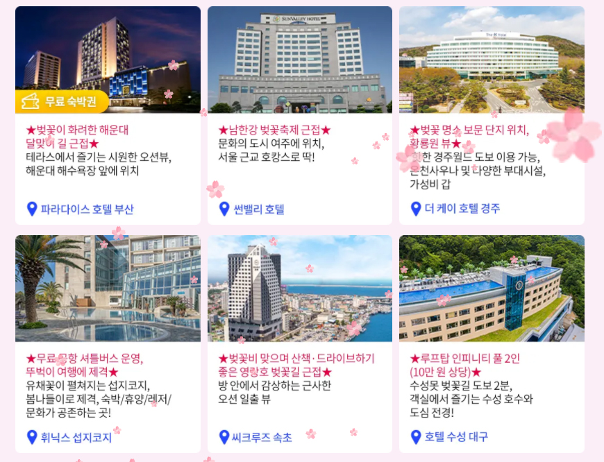 봄시즌 봄꽃따라~ 봄바람~ 국내호텔 서울, 부산, 속초, 강릉, 제주도 기획전 활용해서 커플여행시즌 미리 컨셉부터 정해서 떠나!!