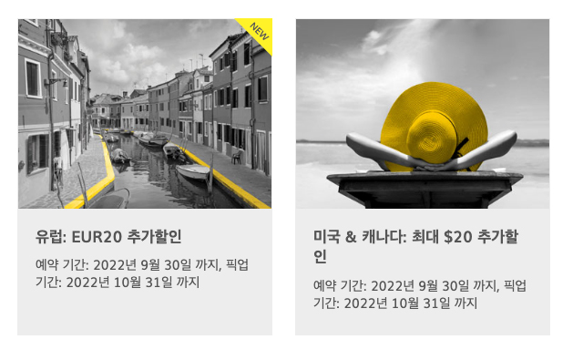 2022년 9월 - 10월 렌터카예약 미국/괌/하와이/유럽 할인코드