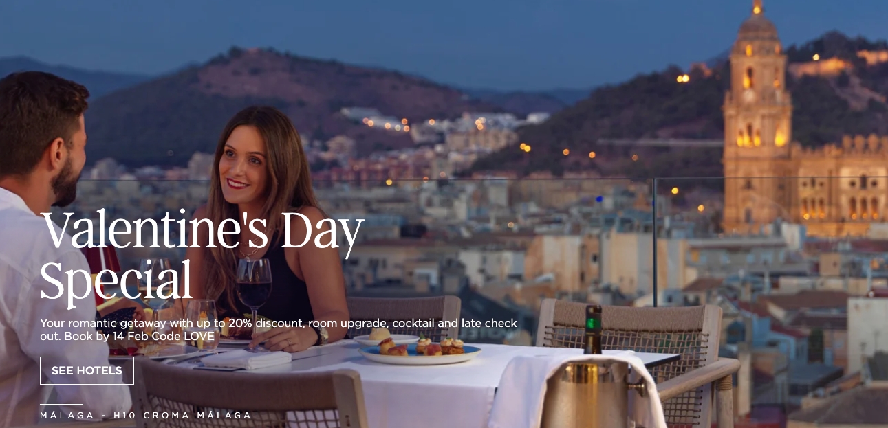 20% off Code LOVE / H10 Hotels Spain urban hotel Valentine's Day 2024